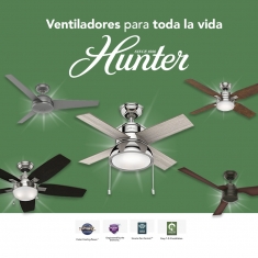 Estos ventiladores están disponibles en una variedad de estilos, tamaños y colores para satisfacer los gustos y necesidades de cualquier usuario, son increíblemente versátiles, ya que funcionan tanto para interiores como para exteriores, lo que los hace perfectos para cualquier entorno. Además, la mayoría de los ventiladores de techo Hunter están calificados para uso húmedo, lo que significa que son seguros para usar en áreas como el baño o la cocina sin riegos de daños a la unidad.